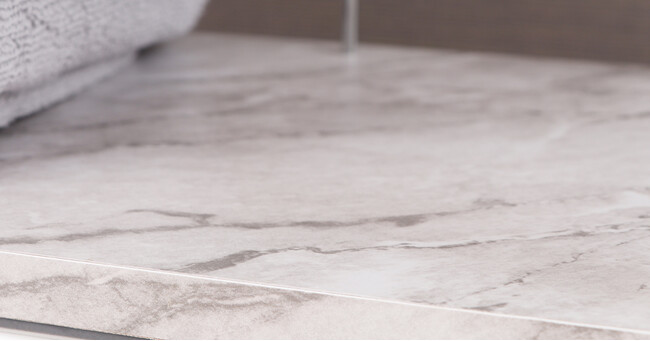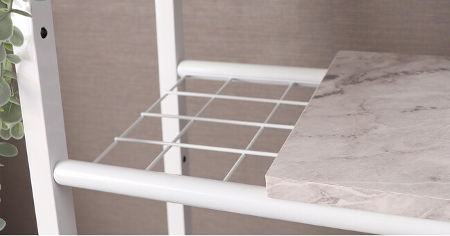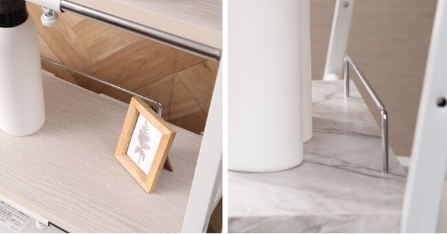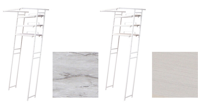 清潔感あふれる真っ白なフレームに合わせた棚板は、大理石柄と木目柄の2種あります。