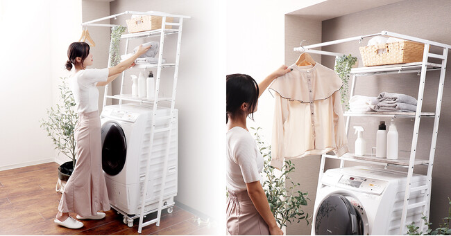 「ヤマソロ」洗濯機を動かさずに設置できる!伸縮立て掛けランドリーラックを発売