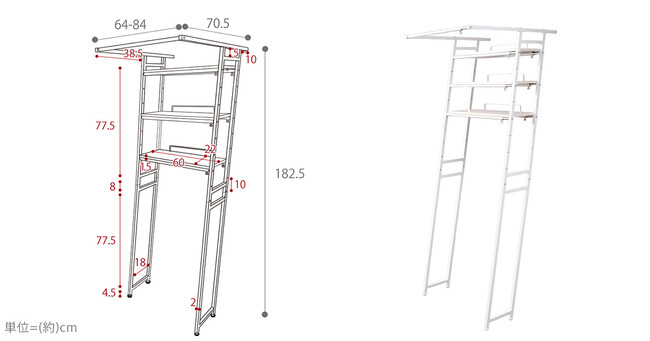 サ イ ズ :(約)幅64〜84×奥行70.5×高さ182.5cm ※アジャスターを含む
