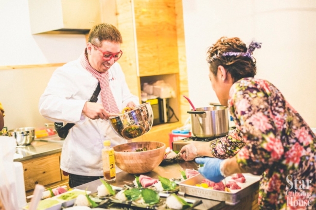 仲間うちで食事を持ち寄り、気軽に集まって語り合う「ギャザリング」スタイル。近年、注目を集めているギャザリングですが、ホームパーティーのように自分の家でやりたくても、立地や手間の面がハードルになることも多い。その点に着目し、アクセスのよい原宿に、日本初のギャザリング専用スペースとしてオープンするのが「Star Gathering House」です。