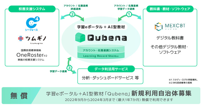 学習eポータル+AI型教材「Qubena(キュビナ)」サービス提供開始に伴い、新規利用自治体向けに来年度末まで無償提供を決定〜来年度全国学力学習状況調査のMEXCBT利用に向け、導入/活用推進を支援〜