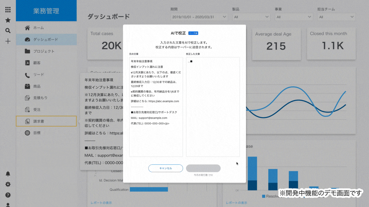 このたびの「テックタッチ AIレビュー」は、ユーザーが入力したナビゲーションの内容を、ChatGPTを利用し、自動で編集/校正する機能です。本機能の利用により、ナビゲーション作成時の編集/校正作業への所要時間を大幅に削減でき、ユーザーは効率的にガイド・ナビゲーション作成作業を行うことができます。