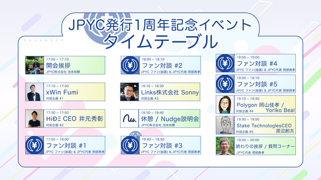 弊社代表の岡部と、Web3界隈の著名人を招いた対談企画や、抽選で選ばれたJPYCのファン5名との対談を実施