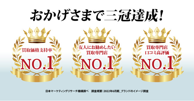 買取大吉は一般ユーザーを対象にしたリユース品の買取専門店です。貴金属やブランド品を中心に、時計や切手、古銭、骨董品、商品券、携帯電話やカメラ、その他電化製品に対応しています。大型家具以外は、ほぼ何でも買い取るという取扱品目の幅広さが「大吉」の特徴です。小売は行わず、文字通り一般ユーザーからの買取りに特化しています。2022年度の調査で「買取価格支持率」「友人にお勧めしたい買取専門店」「買取専門店口コミ高評価」で3冠を獲得している、お客様が安心して地域のコミュニティーセンターのようにご利用できる店です。47都道府県で約650店舗以上を展開し、中古ブランド業界2位の店舗数に成長しています。