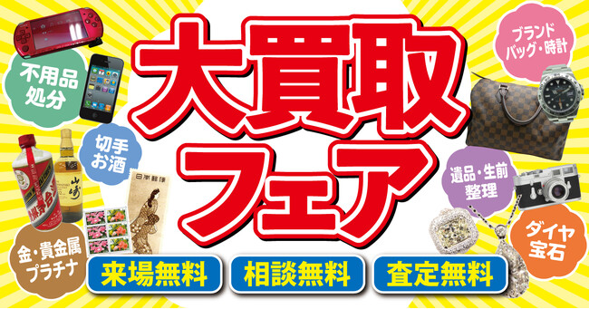あなたの身近な場所で出張買取査定!全国約650店舗展開の「買取大吉」、「大買取フェア」を全国各地で開催!