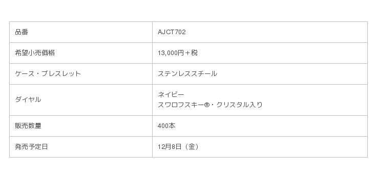 ・ブランドカラーでもあるネイビーのダイヤルには、ライトブルーとクリアカラーのスワロフスキー(R)・クリスタルをインデックスとして交互にあしらったスタイリッシュかつエレガントなデザインが魅力です。