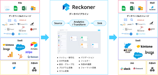 Reckoner はノーコード型 ETL、データパイプラインサービスです。