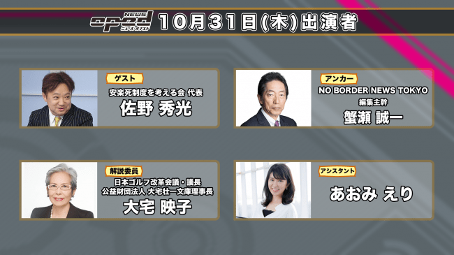 《ゲスト》 安楽死制度を考える会 代表 佐野秀光