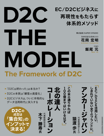 「D2C THE MODEL」は、ECプラットフォーム「ecforce」(イーシー・フォース)を提供するSUPER STUDIO 取締役 COO 花岡、執行役員 CMO 飯尾がD2Cビジネスの成功確率を最大化するための方法論を体系的にまとめた超実践的バイブルです。
