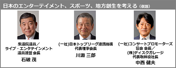 初回から豪華な講師陣が揃うなか、注目は衆議院議員 石破氏、日本トップリーグ連携機構 川淵氏、コンサートプロモーターズ協会会長 中西氏の3名による基調講演。さらには、地域活性化センター理事長から理事長の椎川氏、内閣官房からは末宗氏を迎え、地方創生の”今”と”これから”を学べる魅力的な講演プログラムが発表された。計40もの注目講演が展示会開催期間中に連日開催される。