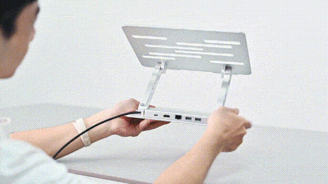 「9way-PCハブスタンド」 は、スタンドと 8in1 ハブを磁気で巧妙に組み合わせ、現代人向けの一体型ワークステーションを作り上げました。ハブは取り外して単独で使用することもでき、使用効率と柔軟性を大幅に向上させます。