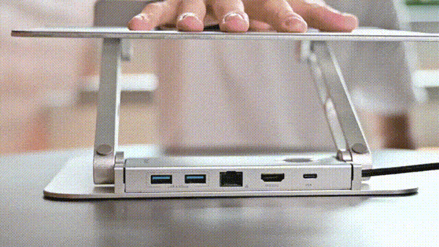 取り外し可能な8in1ドッキングステーションは、まるで魔法のように、磁力でスタンドにピタッとくっつきます。