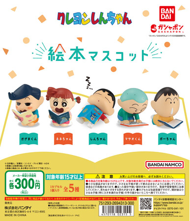 株式会社バンダイ ベンダー事業部(本社:東京都台東区)は、「クレヨンしんちゃん」のキャラクターを用いたマスコット「クレヨンしんちゃん 絵本マスコット」(1回300円・税10%込、全5種)を2023年11月第4週から順次、全国のガシャポンバンダイオフィシャルショップ、玩具売り場・量販店・家電店などに設置されたカプセルトイ自販機にて発売いたします。