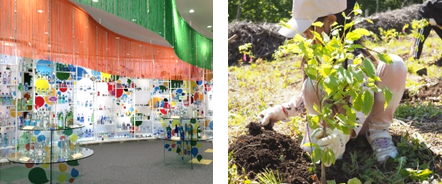 クリクラは循環型社会を目指し、徹底したリユースとリサイクルを通して環境に配慮した活動を推進しています。地域住民をはじめ、保育園児や小学生を招いた工場見学や、クリクラのお客様と共に行う植樹活動「クリクラの森」づくり、30cmオリジナル定規の寄贈を継続しており、限りある資源の大切さを多方面からお伝えしています。