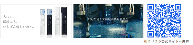 12年連続お客様満足度No.1※ の「クリクラ」は、2002年の事業開始以来、「安心・安全」を理念に、現在約500拠点の配送ネットワークでご家庭やオフィスに直接製品を配送しています。環境に配慮したサステナブルなボトルの採用や輸送によるCO2削減、サーバーの100%リサイクルなどの循環型社会を目指した取り組みを行うとともに、今後もクリクラに携わる研究員、メンテスタッフ、配送員などすべてのプロフェッショナルが協力のもと、お客様へ安心・安全なお水をお届けしてまいります。