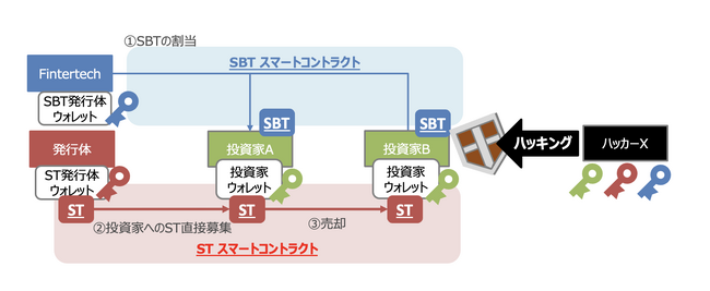 STのスマートコントラクトにより、当該STは、SBTが付与された投資家しか売却、取得できないよう設計されており、これによってハッキングによる秘密鍵の流出時にもSTの不正な移転ができないような設計としております。
