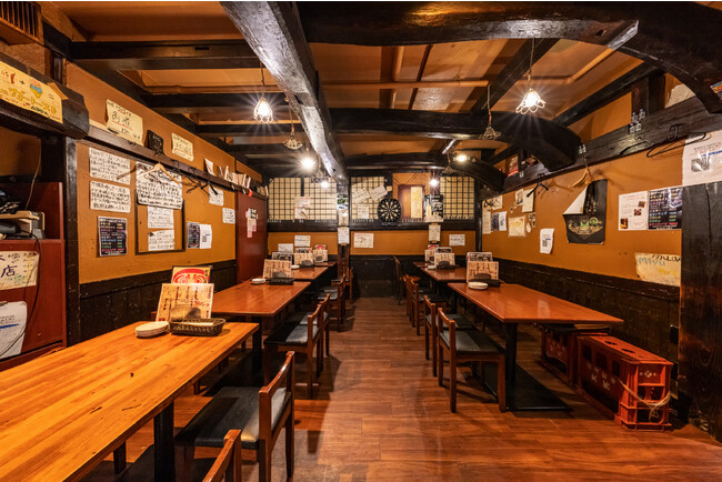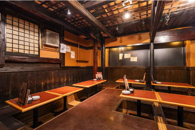 掘りごたつのお席で最大収容数60名、テーブルのお席で25名と忘年会のシーンで大活躍の広々した店内。