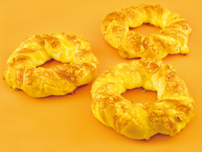 デニッシュ生地にハム・ホワイトソースを包み、チーズをトッピングし焼き上げました。