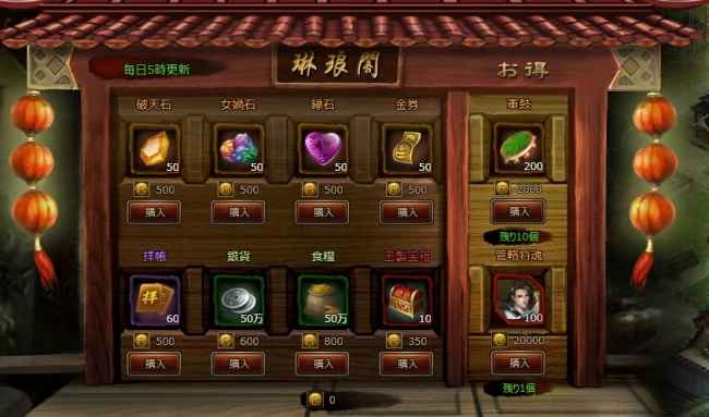 琳琅閣ではミニゲームで獲得したお祝いコインをアイテムに交換できます。数量限定の景品もありますので、毎日チェックしましょう。