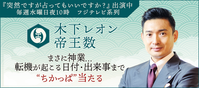 大人気TV番組『突然ですが占ってもいいですか?』で話題を博し、その圧倒的な鑑定力と的中力で世の中を席巻する「木下レオン」。占術界の王にふさわしい「木下レオン」のオリジナル占術「帝王数」であなたの運命や現実に言及していきます。