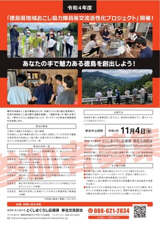 令和4年度「徳島県地域おこし協力隊員等交流活性化プロジェクト」の参加者を募集します