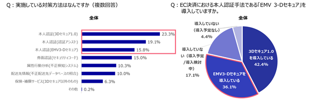 *実施している対策方法の質問は複数回答における全体の割合(母数が1009名)で、「EMV3DS」を導入しているかの質問は単一回答で549名を母数とした割合(母数が異なるため割合の数値が異なる)
