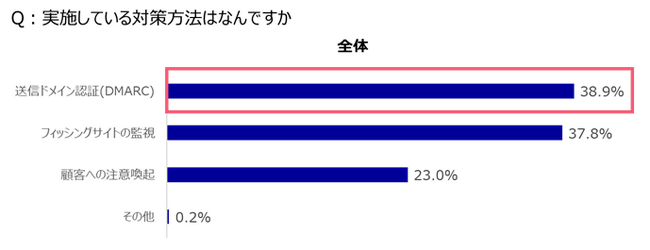 フィッシング対策については、既に9割以上が対策済みで、DMARCを導入しているケースが最も多く見られました。