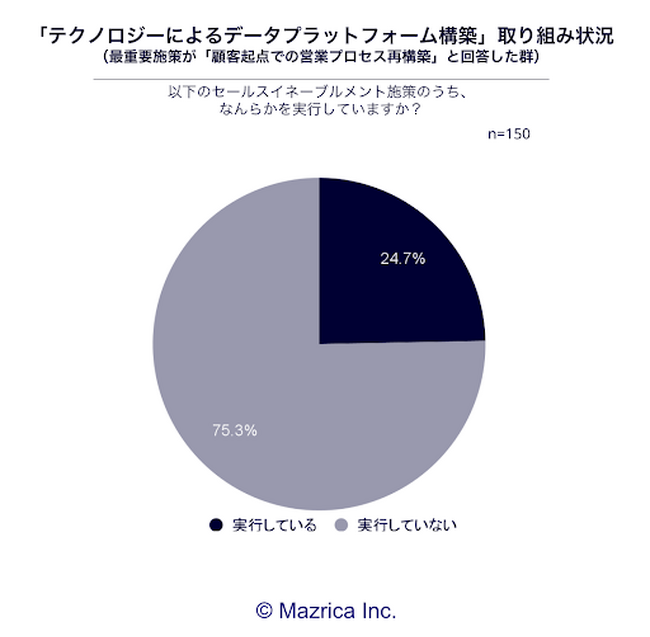 顧客のデータを蓄積する体制が未整備な状態であるにも関わらず「顧客起点」での営業プロセスの設計に着手する企業が多く、営業組織の認識と実態に矛盾が生じている状況。