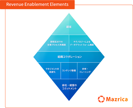 その要因として、法人営業に関する中立的・専門的な調査機関が不十分であることが大きいと考え、海外文献や本調査結果をもとにセールスイネーブルメントの全容を体系化し、「Revenue Enablement Elements」を策定しました。