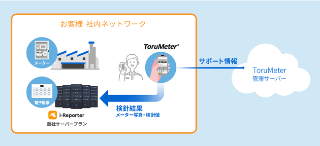 なお、本サービスは、ToruMeter(R)で検針した結果(データ)を自動入力する検針票(株式会社シムトップスのConMas i-Reporterの電子帳票)を自社サーバー上で運用する“自社サーバープラン”を導入済み、またはこれから導入するお客様向けのサービスとなります。