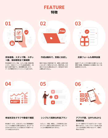 ※上記以外にも、GPS機能、インスタントウィン(即時抽選)機能、多言語対応など、近日中に機能を追加予定です。