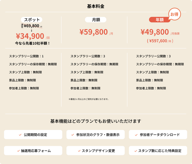なお、提供開始を記念し、「スポット」プランでのご契約をいただいた先着10社様に、半額でご提供するキャンペーンを実施いたします。