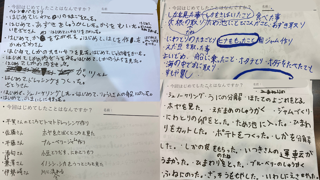 ・子供たちは、あの後ご飯を食べる前に必ず「いただきます」を言うようになり、食べられないと思っていた野菜についてもまずは食べてみる、みたいな行動をとるようになりました。きっとどの体験が欠けてもこうなってはないはずなので、たくさんの大人たち(参加者の方も含め)に囲まれて大きく育ったと思います。(抜粋)