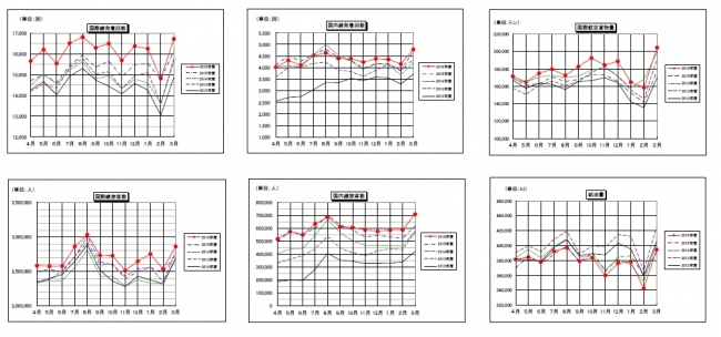 那覇線、大阪(関西)線、札幌(新千歳)線などが好調だったことにより、前年度比5%増の7,210,517人と8年連続で最高値を更新(初の700万人超え)。