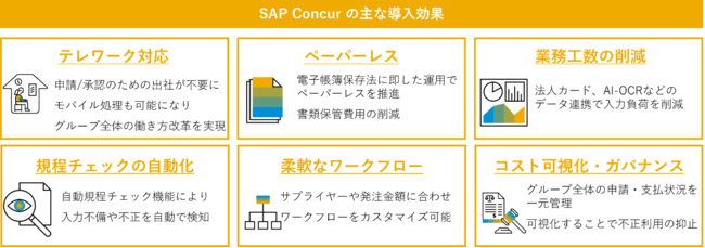 SAP Concurの導入により、経費精算業務の作業時間削減が実現、モバイルアプリの活用で場所や時間を問わず、申請・承認作業の実施が可能になります。