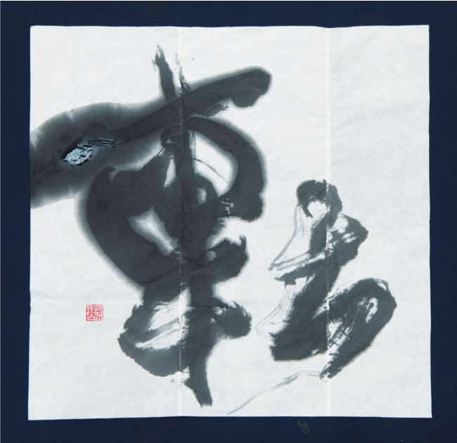お坊さんに考えていただいた2022年の恋愛漢字「転」を、四国大学書道文化学4年・河野幸太さんが淡墨(たんぼく)という表現で揮毫(きごう※字や絵をかくことを意味します)。「書は二度と同じ線を引くことができません。今回は100枚以上書いた中から、この1枚を選びました」と河野さん。転という漢字はバランスをとるのが非常に難しいそう。「授業がリモートか対面かでコロコロと変わり、まさに“転”のような3年間でした。コロナ禍で人との対話が減ったのは残念だった反面、書の研究に没頭できたのは良かったです」。