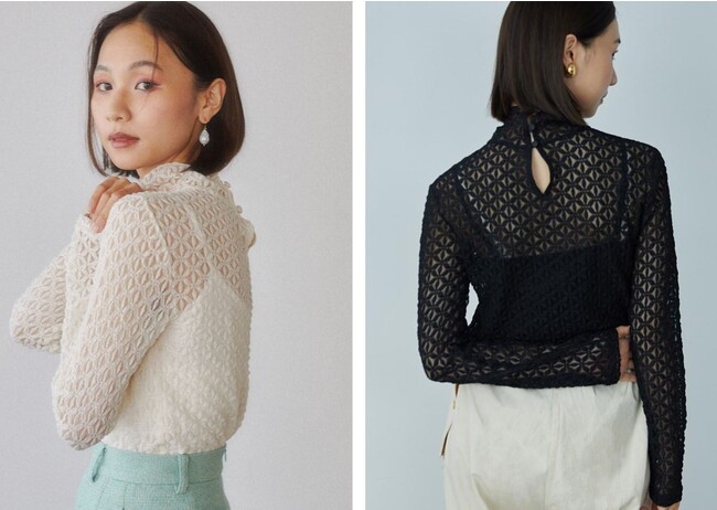 コーディネートに程よい甘さとトレンド感をプラスするレーストップスがRANDEBOOより新登場。