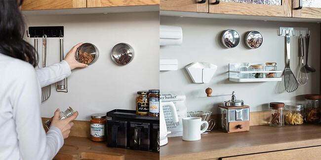 マグネットタイプのキッチンパネルで見せる収納を楽しめる
