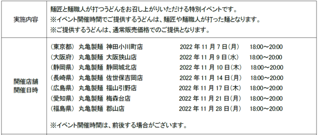 丸亀製麺は11月で創業22周年 感謝の気持ちを込めて、手づくり・できたてのおいしさを存分に楽しめる特別イベントやキャンペーンを続々とお届け 「手づくり・できたて22年 丸亀製麺 感謝祭」を開催