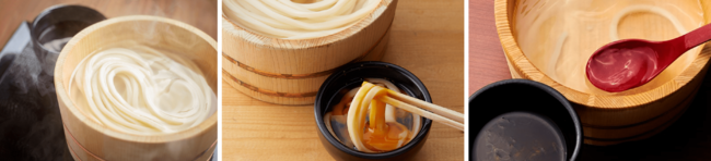 ぜひこの機会に、すべての店で粉から打つからこそ味わえる『釜揚げうどん』の小麦の風味やもちもちとした食感を、揚げたての天ぷらや無料で楽しめる薬味などと一緒にお腹いっぱいお召し上がりください。