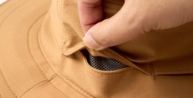 小雨を防ぐ耐久撥水性や、ベタつき・ムレ感を抑えるビン革やベンチレーター、サイズ調整のアジャスタなど、アウトドアのフィールドで役立つ機能を余すことなく搭載。多機能なハイテクキャップ&ハットです。