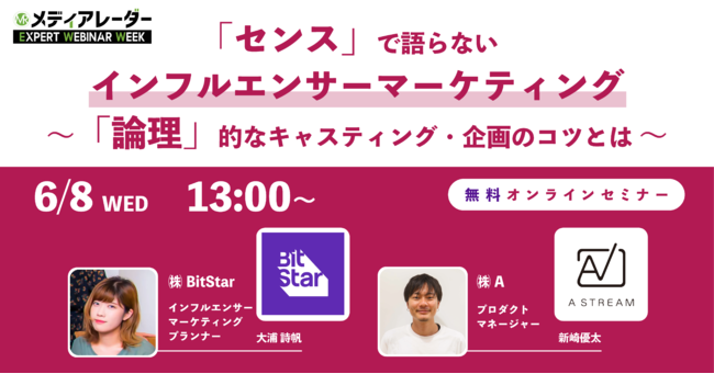 「『センス』で語らないインフルエンサーマーケティング〜『論理』的なキャスティング・企画のコツとは〜」6月8日(水)13:00〜