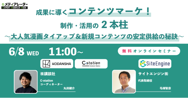 「成果に導くコンテンツマーケ!制作・活用の2本柱 〜大人気漫画タイアップ&新規コンテンツの安定供給の秘訣〜」6月8日(水)11:00〜