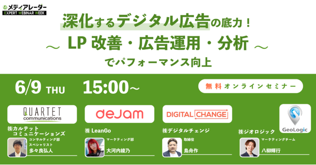 「深化するデジタル広告の底力! 〜LP改善・広告運用・分析でパフォーマンス向上〜」6月9日(木)15:00〜