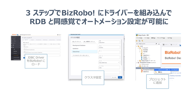 なおCData JDBC Drivers との相互運用性ソリューションについては、「BizRobo!」ユーザー向けのオンラインロボットシェアリングサービス「ROBOT-HUB」のプラットフォームで公開いたします。