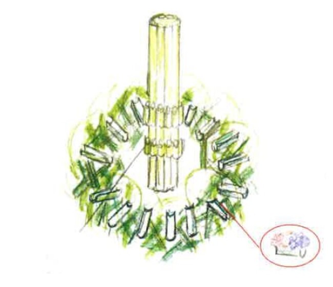 新しい年の始まりにふさわしい花材である?(約3m)とお正月の縁起花である葉牡丹を使ったハーブ園と草月流によるオリジナルのオブジェが皆さまをお迎えします。