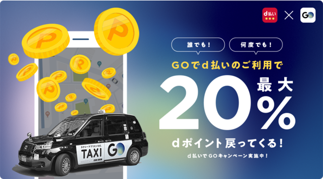 No.1※タクシーアプリ『GO』のご利用で何度でも20%分のdポイント還元!「d払いでGOキャンペーン」を実施