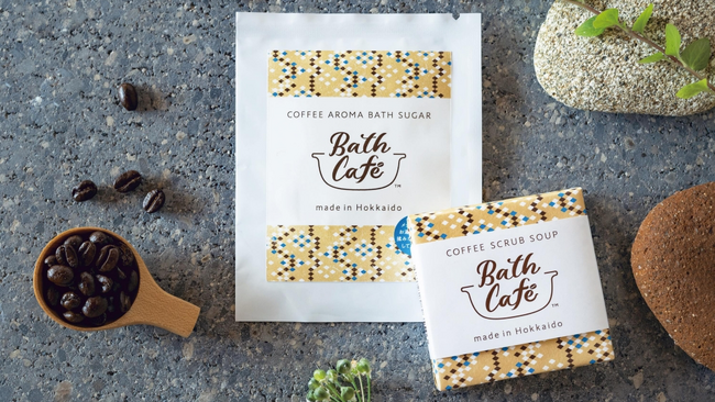 コーヒー豆かすをアップサイクルした石鹸などのバスグッズを販売します。コールドプロセス製法によって原料の植物油に含まれるオレイン酸などの保湿成分を損なうことなくしっとりとした洗い心地に仕上げました。