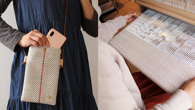 コーヒーの出涸らしを糸や布をコーヒー色に染める ”染料” としてアップサイクルしたバッグを提供。柔らかでぬくもりを感じる手織りの生地は、ずっと触っていたくなる心地よさです。
