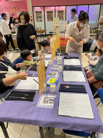 染色業界でサステナブルな取り組みを進める株式会社艶金が独自に開発した「のこり染」と呼ばれる染色方法を活用し、使い終わったコーヒーの粉から色を出し、好きな絵を描いてハンカチを染める体験ができます。染めたハンカチはお持ち帰りいただけます。